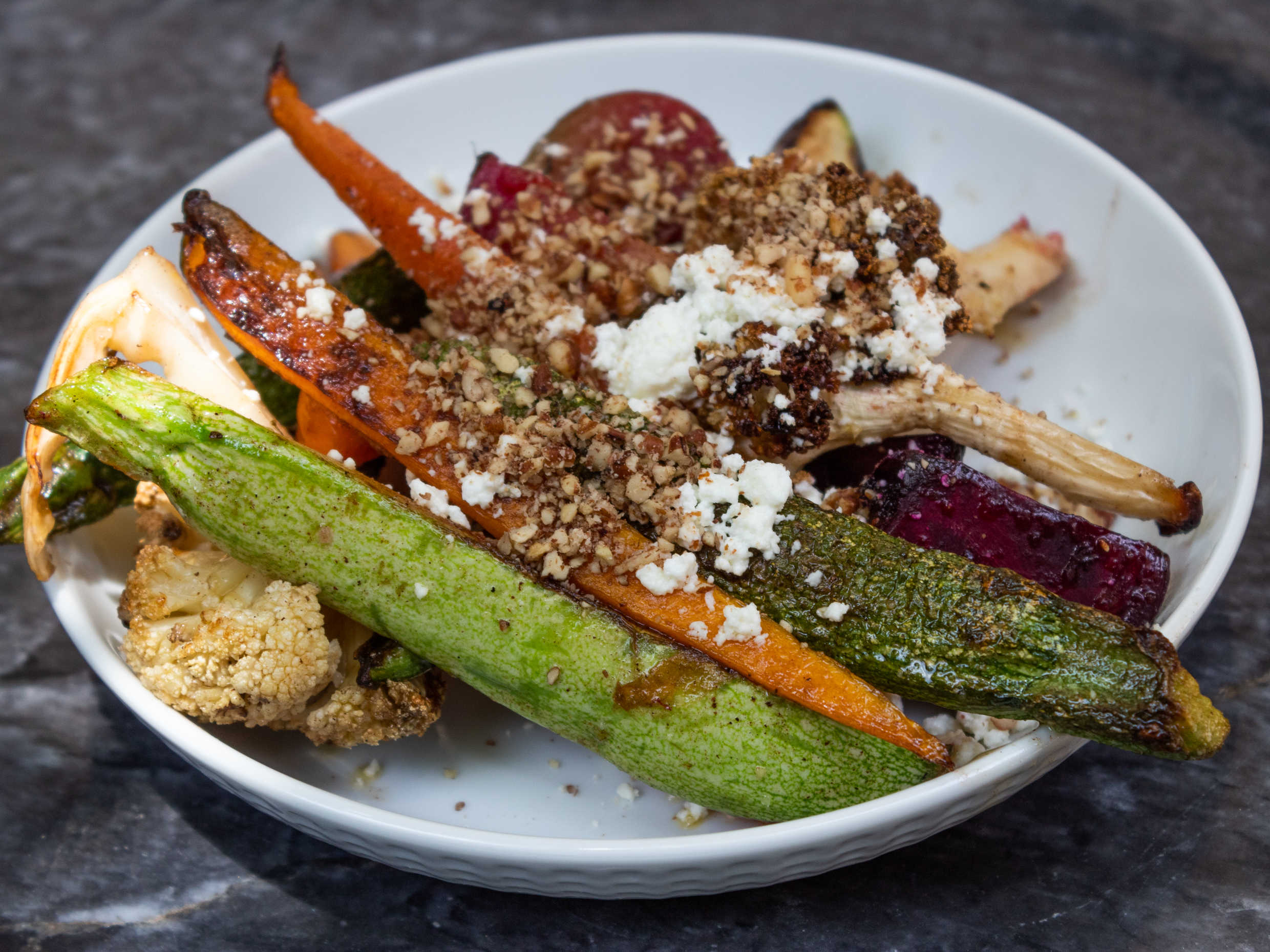 Pan de la casa relleno de salmón, acompañado de vegetales frescos y aderezo de alcaparras/ 260 grs
