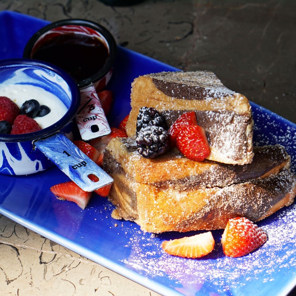 Nuestro famoso pan brioche, crema mascarpone y fruta de temporada