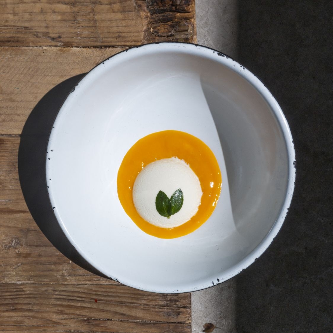 Crema tipo mousse con el toque especial de la casa y frutas de la estación. 130 gramos.