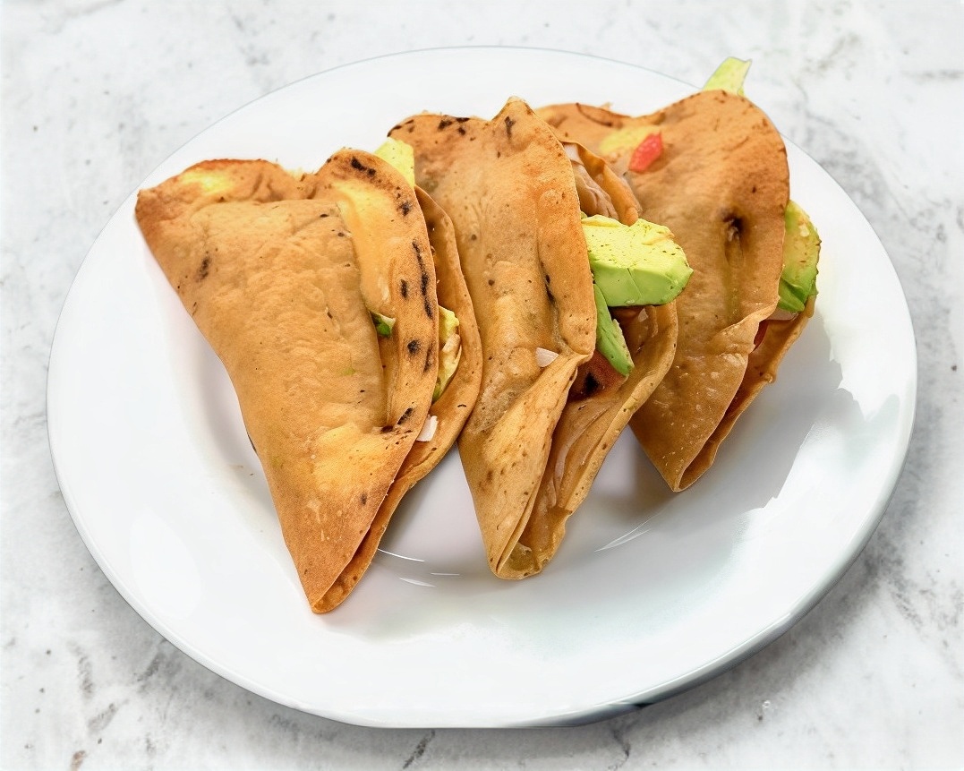 Camarón rebosado en tortilla de harina con mayonesa y salsa mexicana (3 piezas)