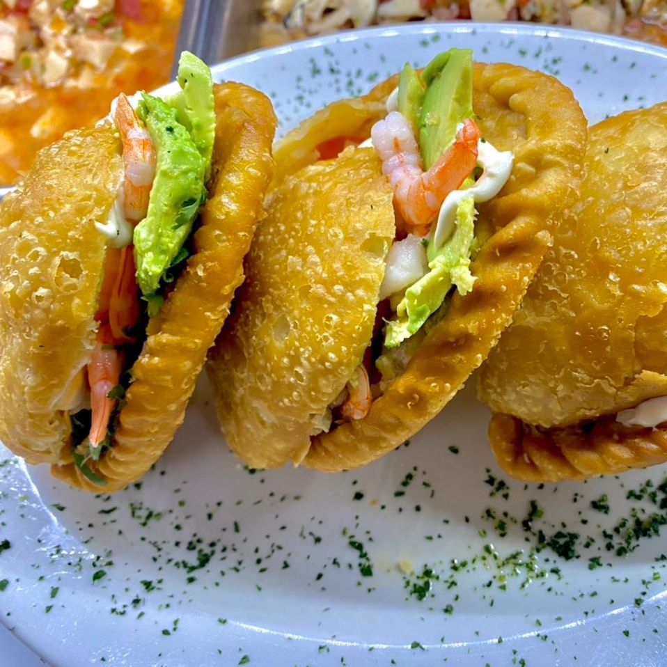 A elegir: camarón, pez, pulpo o jaiba, con mayonesa, pico de gallo y aguacate. Una pieza.