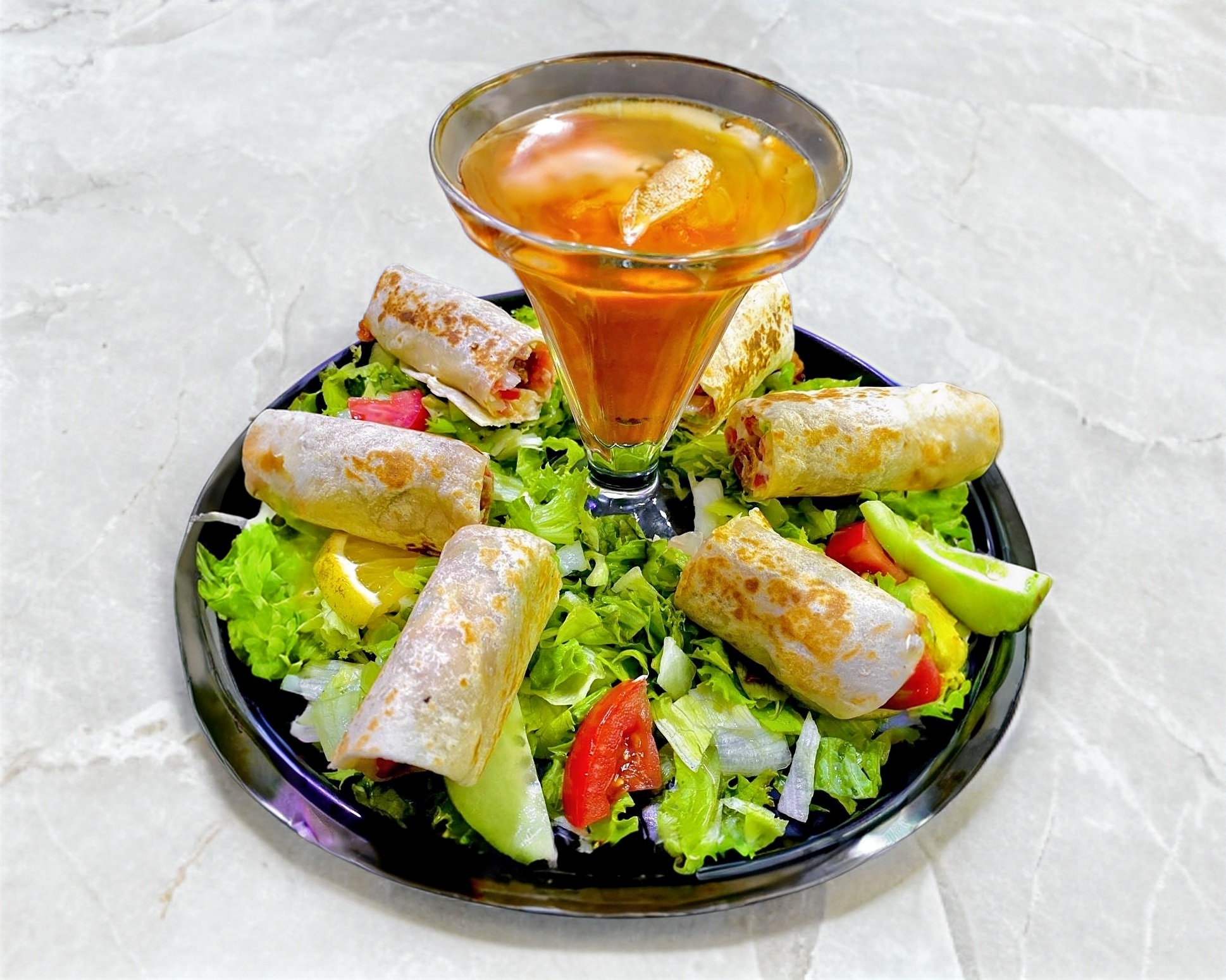Envuelto y relleno de camarón , queso Oaxaca con un toque de chipotle acompañado de aderezo de la casa