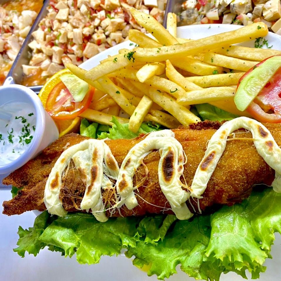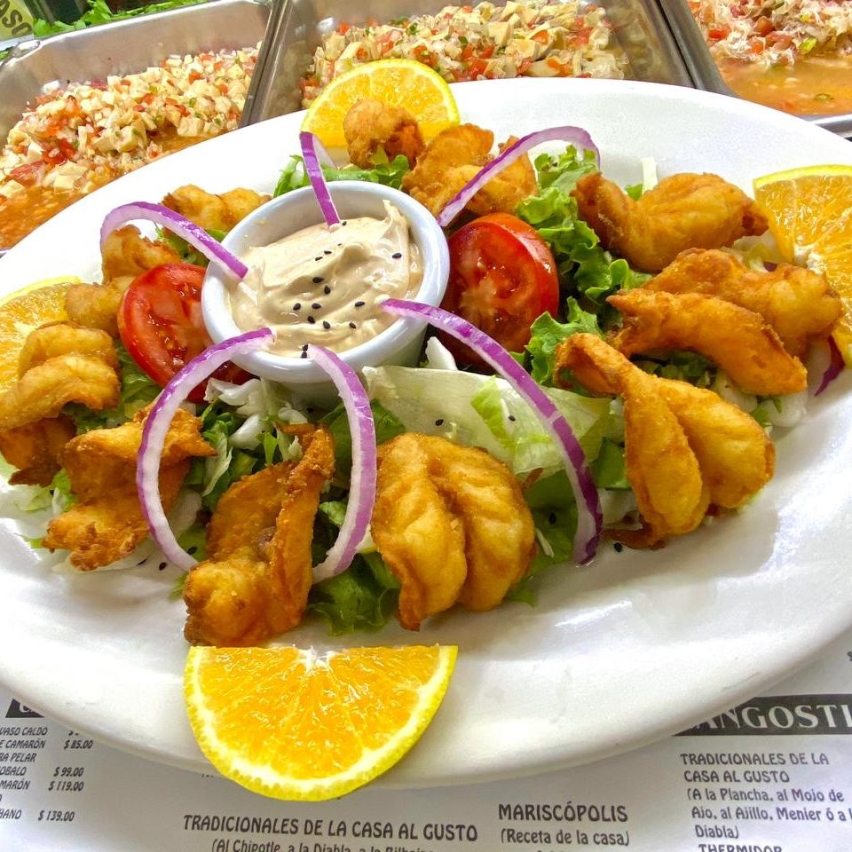Empanizados, al chipotle, a la diabla y a la Veracruzana. Acompañados de arroz.