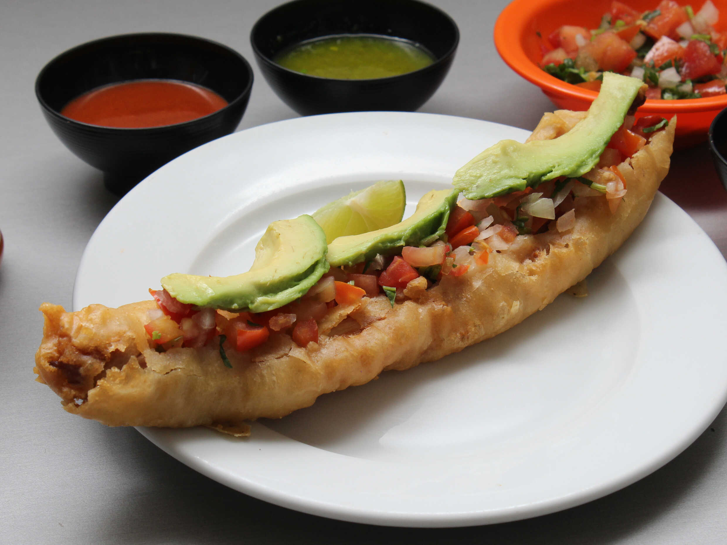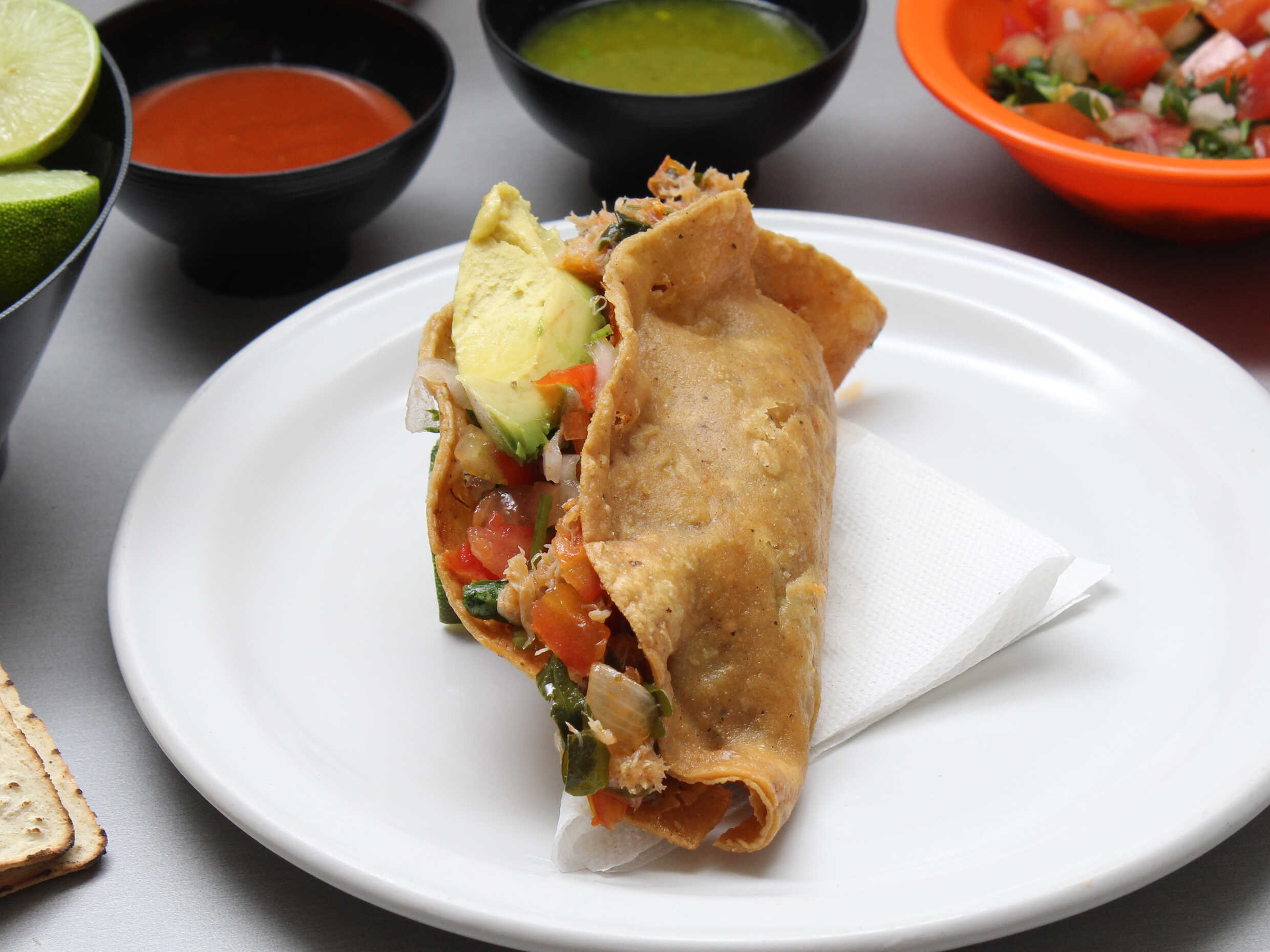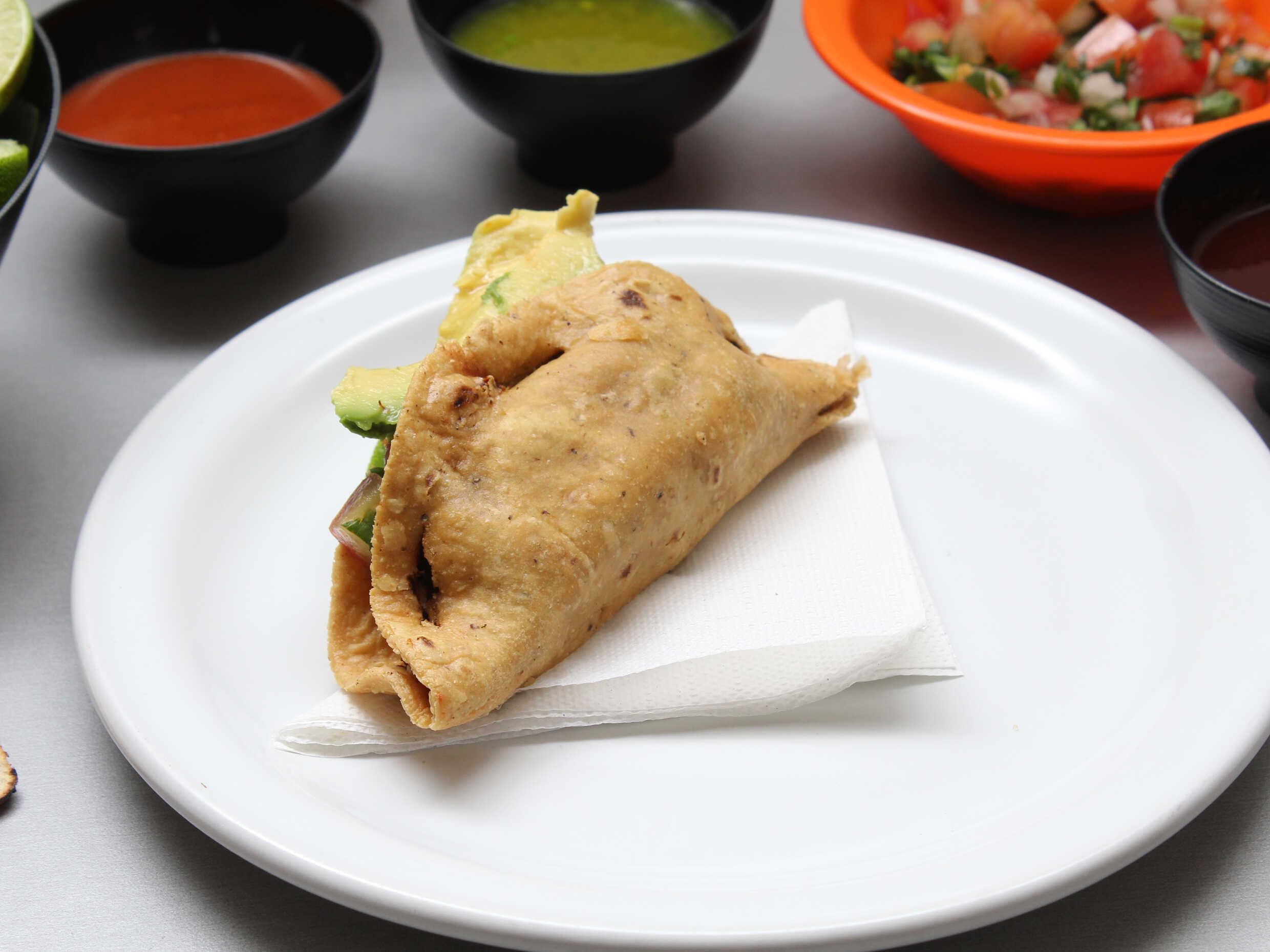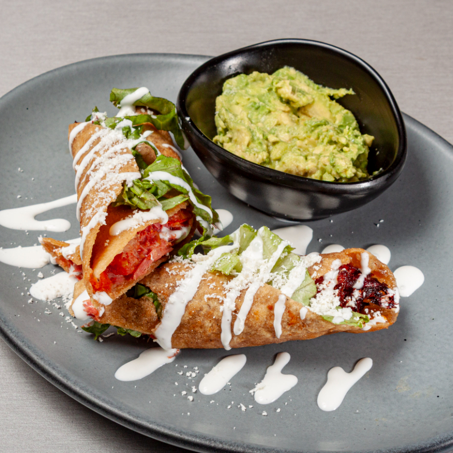 1pz Taco dorado acompañado de aguacate.