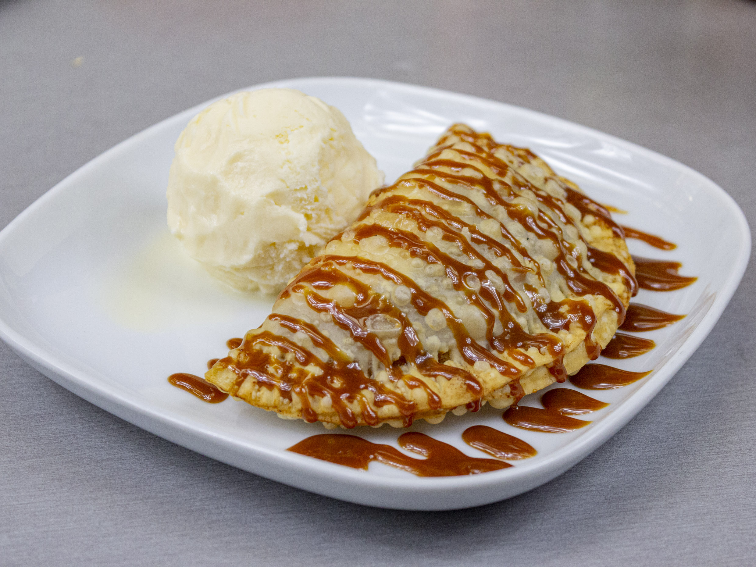 Empanada de Manzana con Queso y helado