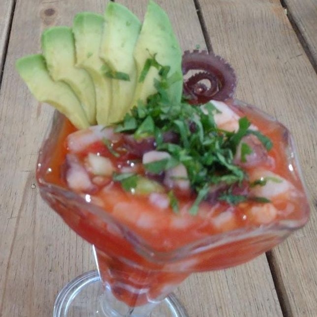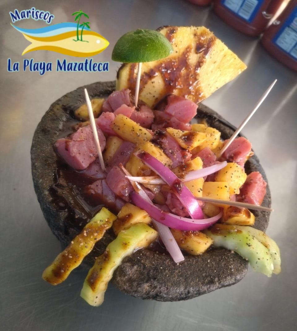 Camarón cocido, lomo de atún y salsa chiltepín.