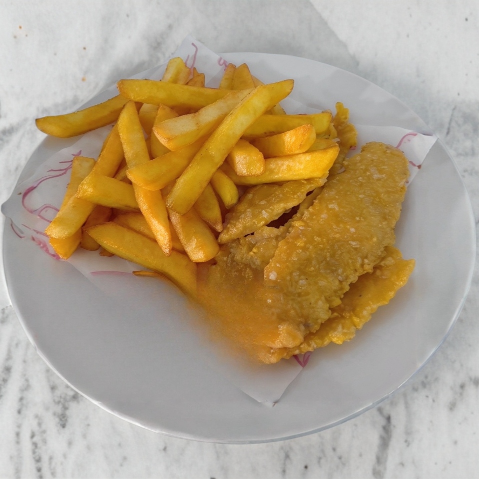 Filete de pescado a la plancha gratinado en queso manchego. Se acompaña de arroz y ensalada.