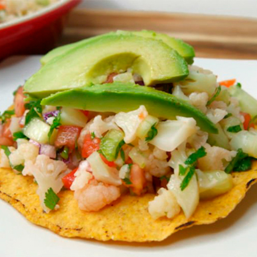 Ceviche de Surimi, Cilantro, Cebolla y Aguacate