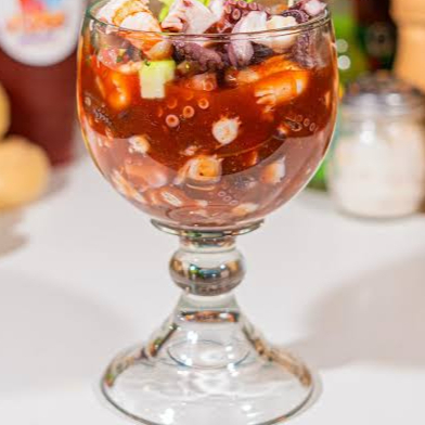 Camarón, Surimi, Pescado y Pulpo (cilantro, cebolla, catsup, aguacate, mayonesa)