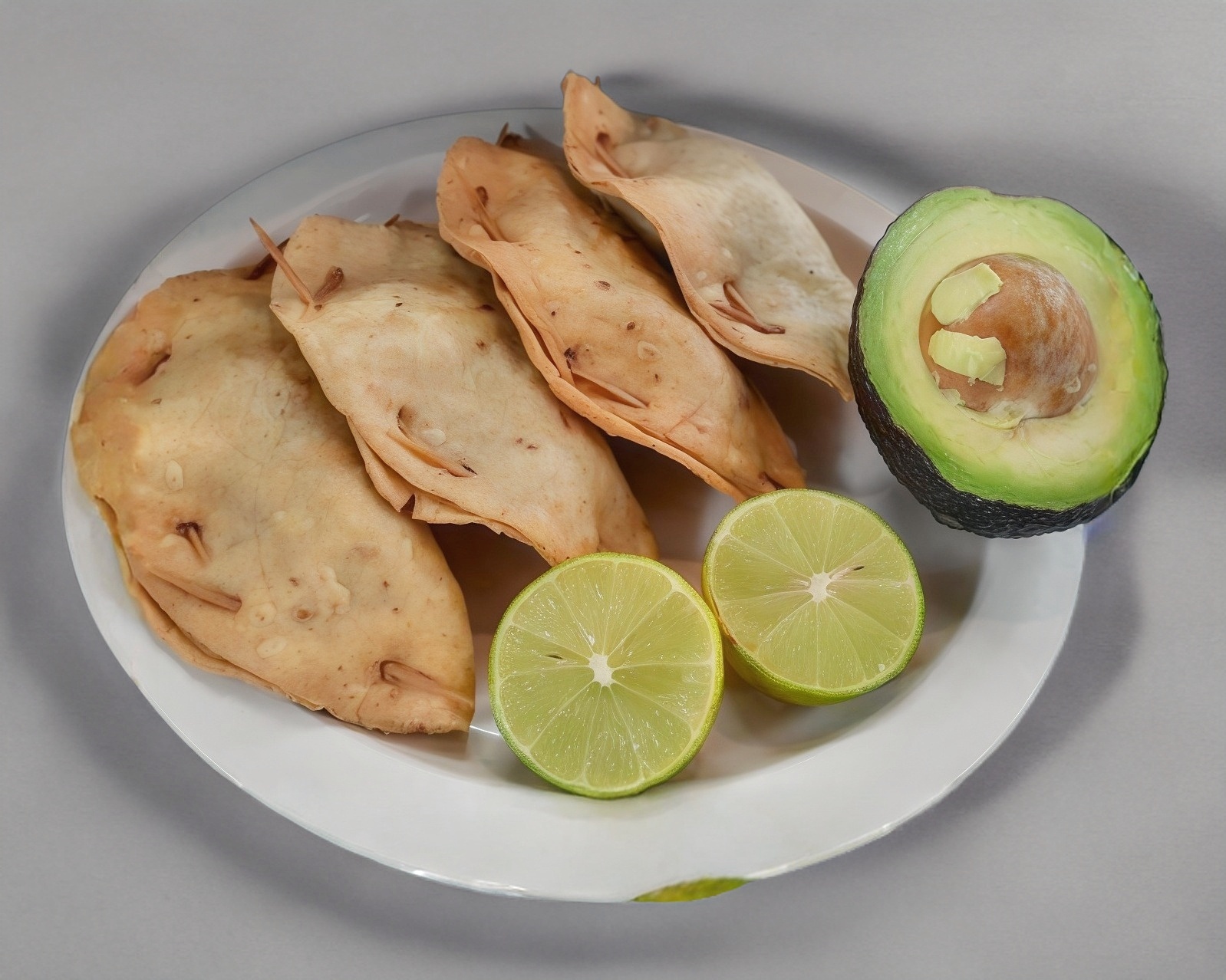 Empanada de camarón, mayonesa cebolla, cilantro aguacate y cátsup (salsa y limón aparte).