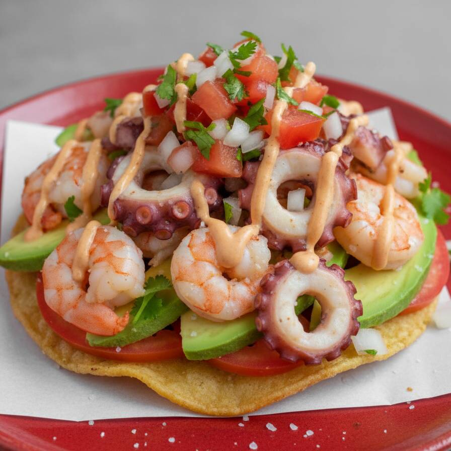 Tostada de Camarón con Pulpo