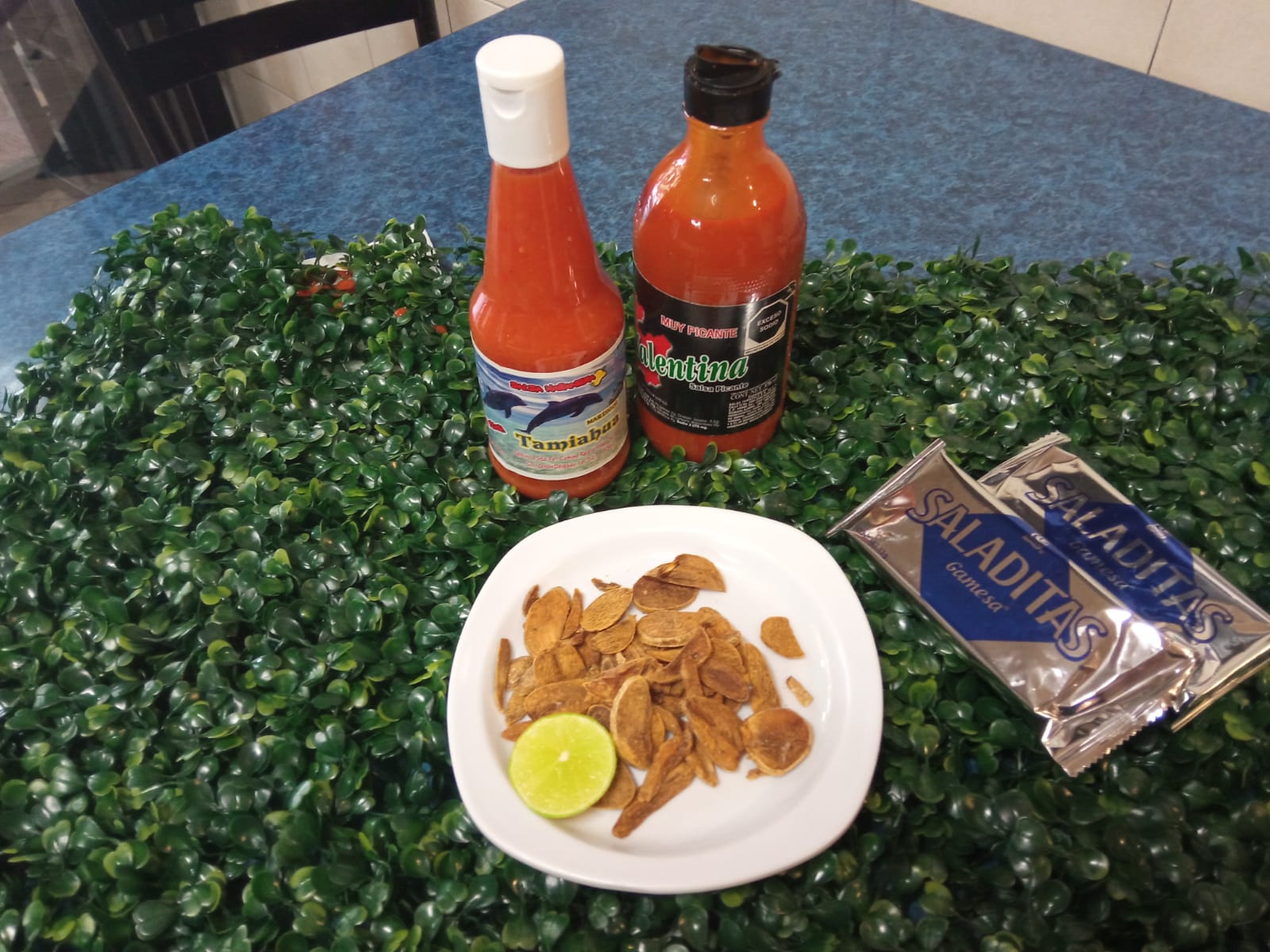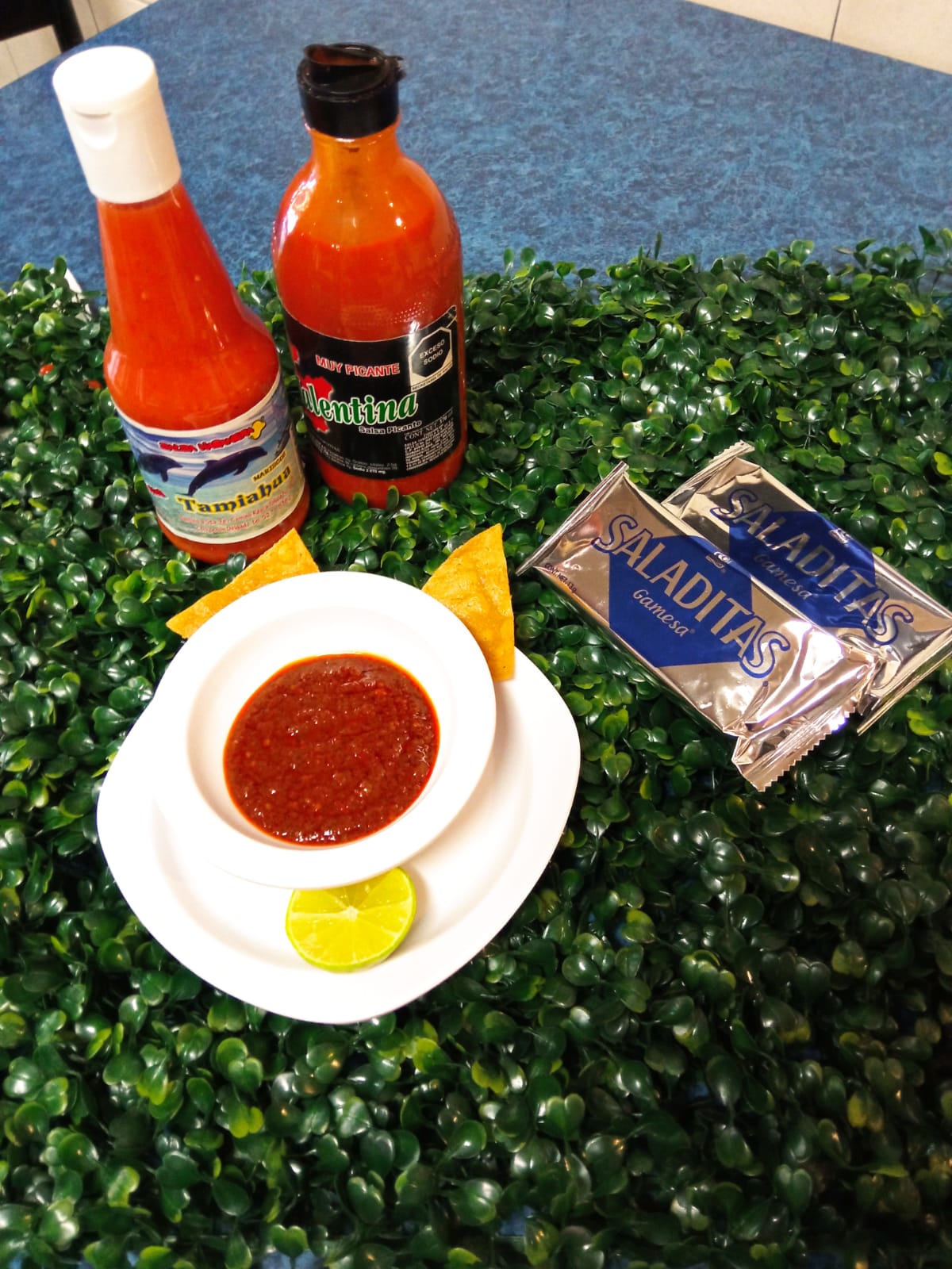 550 Ml. de jugo de jitomate con limón, sal y salsas.