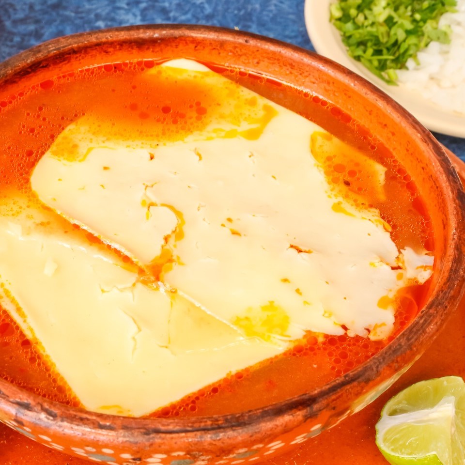 Caldo con Camaron pelado,calamar,pulpo,callo,surimi ,pescado y queso gratinado