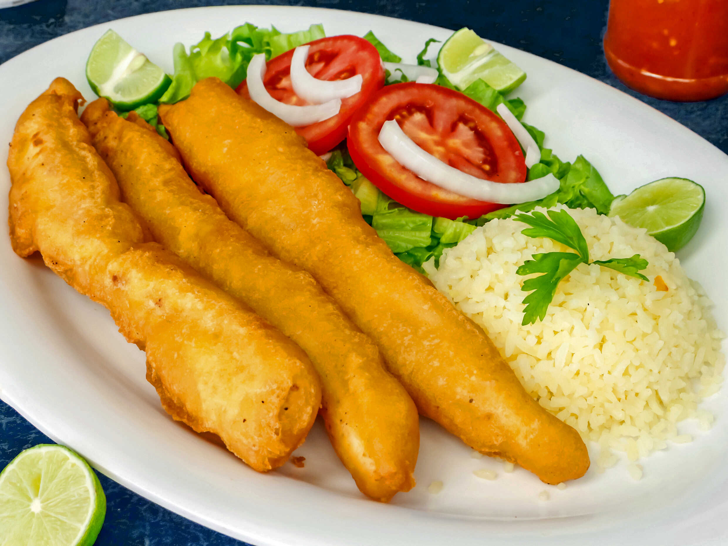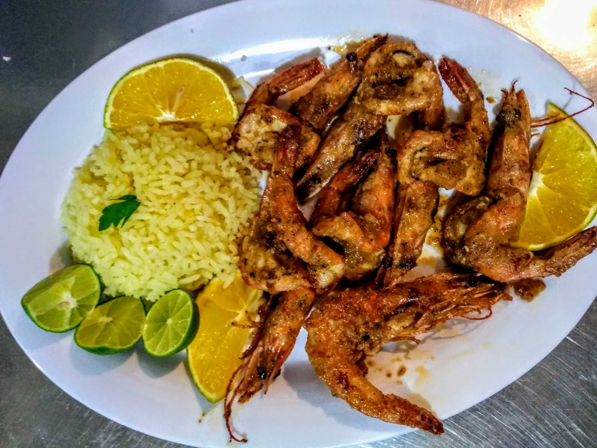 Ricos camarones empanizados acompañados con ensalada , papas o arroz a elegir.
