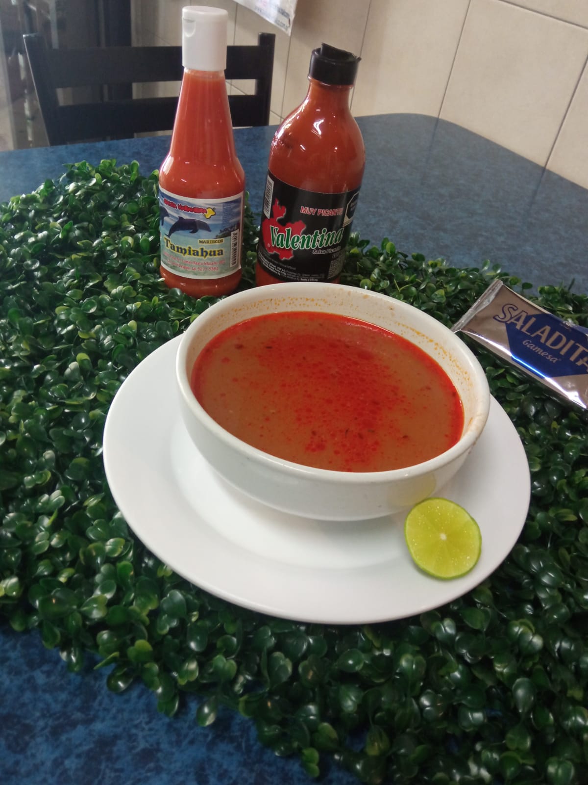 Exquisito caldo con arroz, jaiba, pulpo, camarón y almeja.