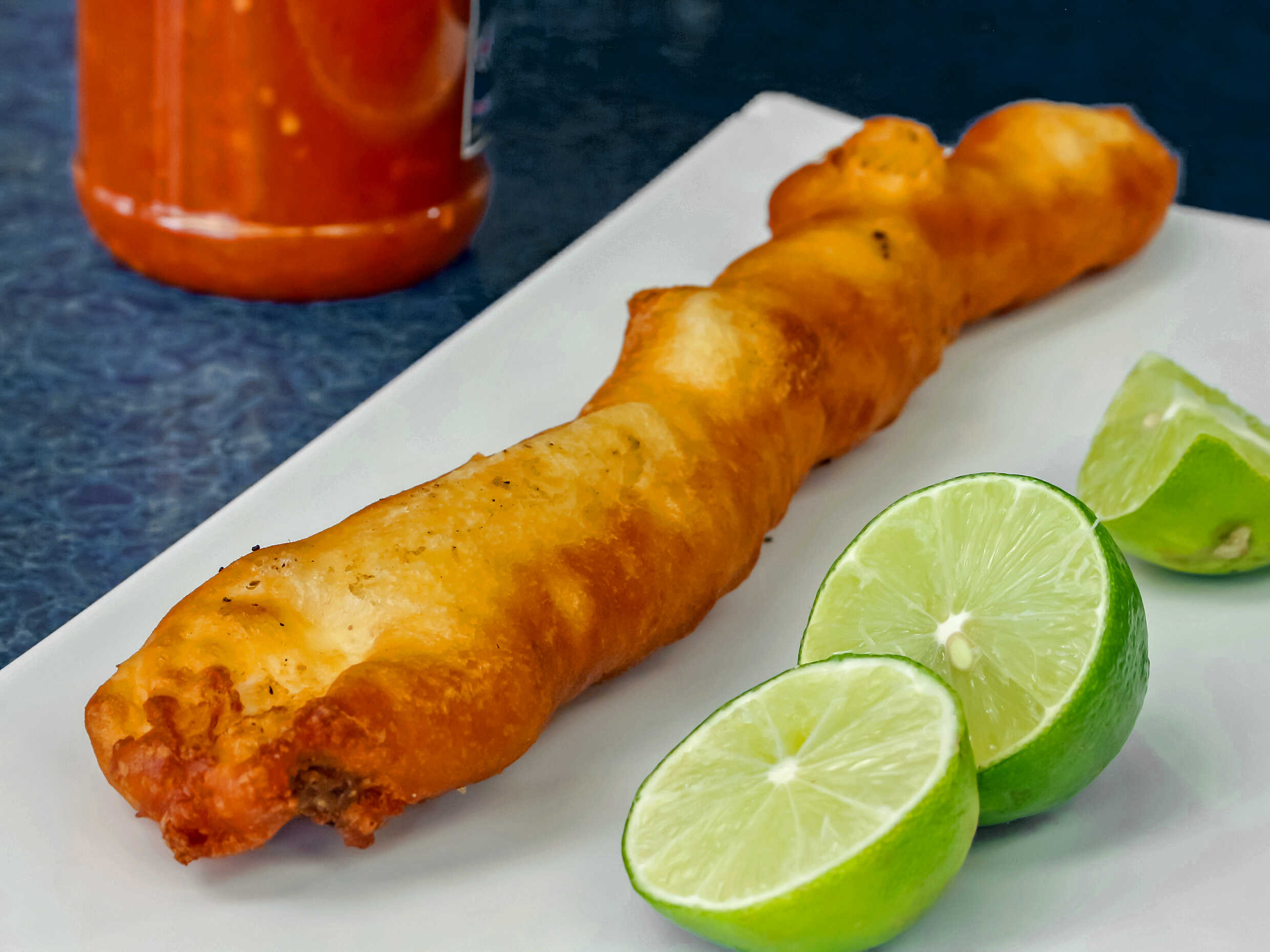 Deliciosa empanada con Camaron, cilantroci,cebolla,catsup,aguacate y mayonesa