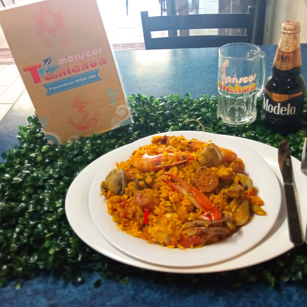Exquisita Paella elaborada con carne de cerdo,pollo,almeja,camaron y jaiba