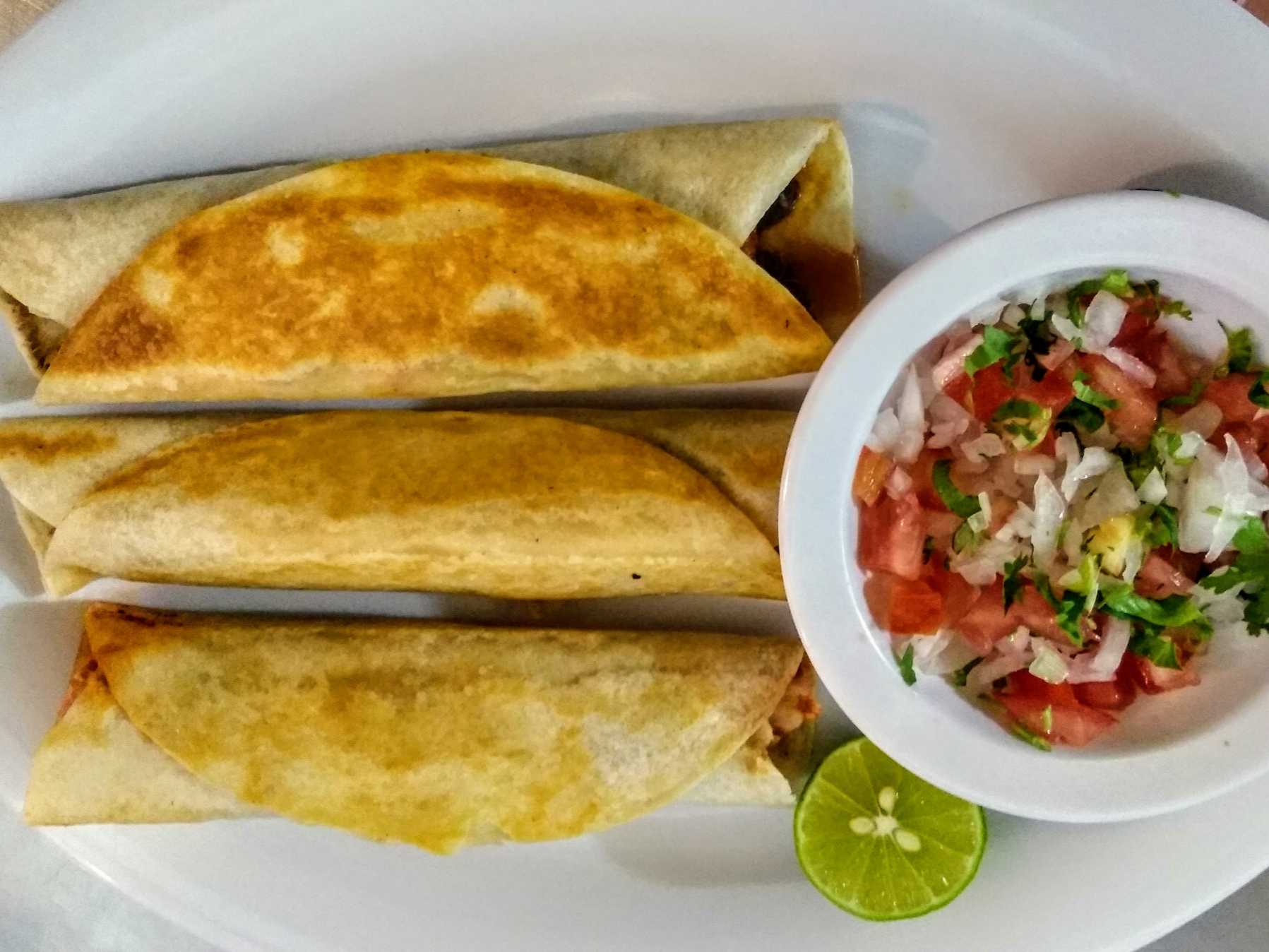 Ricos burritos de camarón en salsa de la casa en tortillas de harina,frijolitos, queso oaxaca