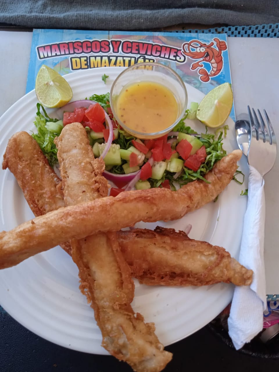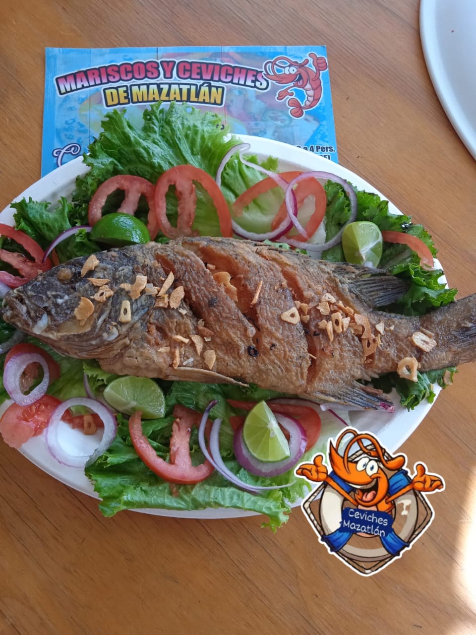 1 Tostilocos de Camarón, 1 orden de filetes fritos (3 pz), ensalada y 1 refersco de 355 ml.