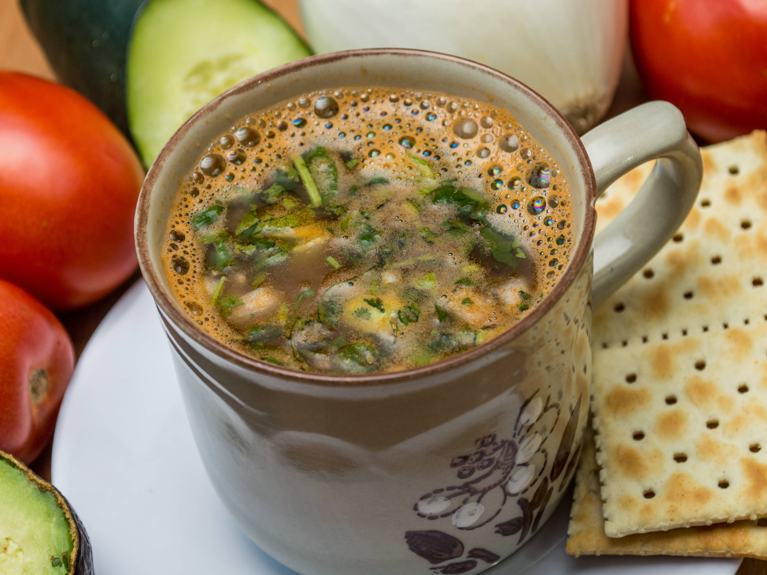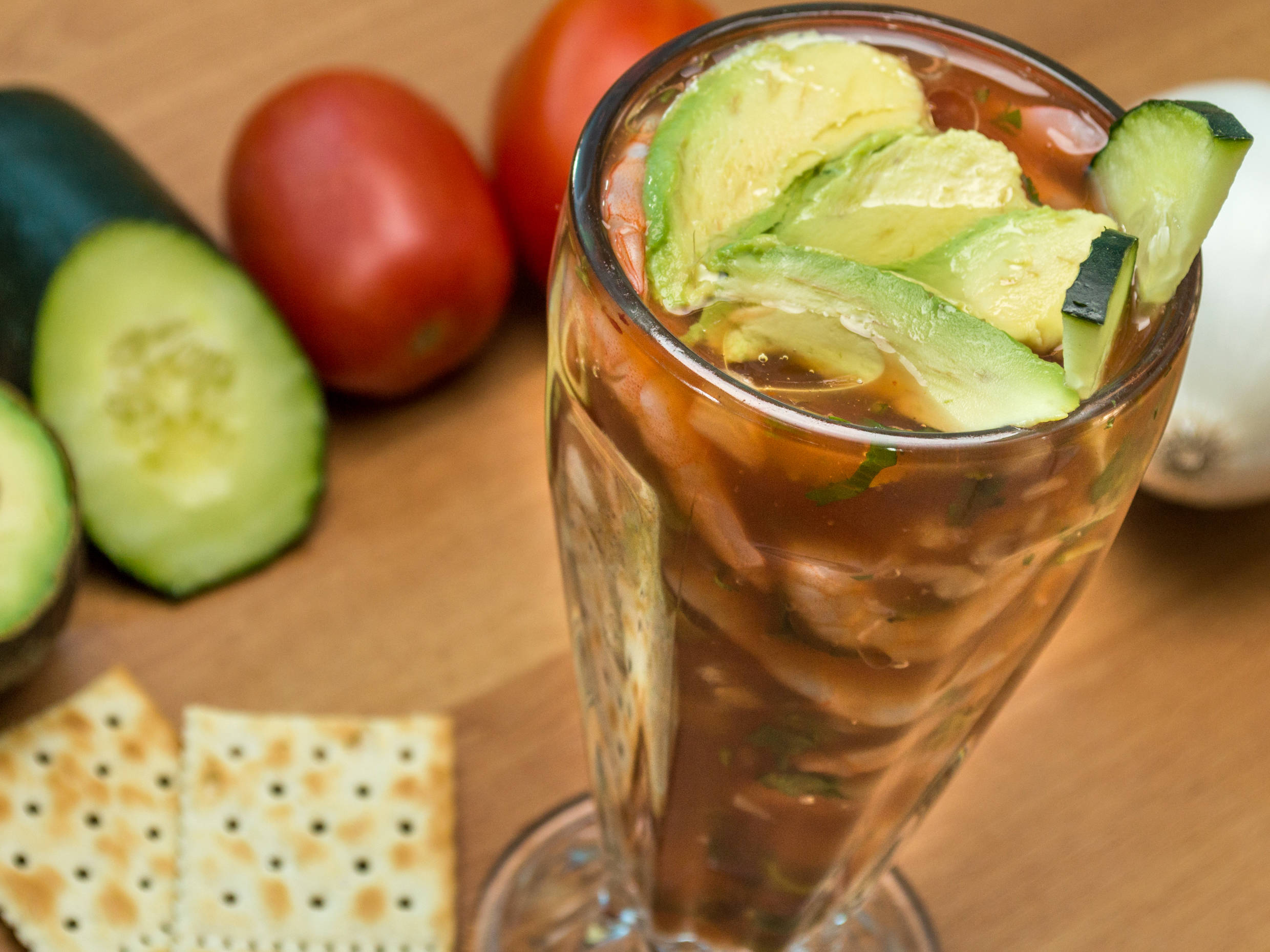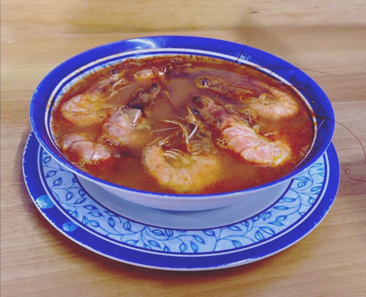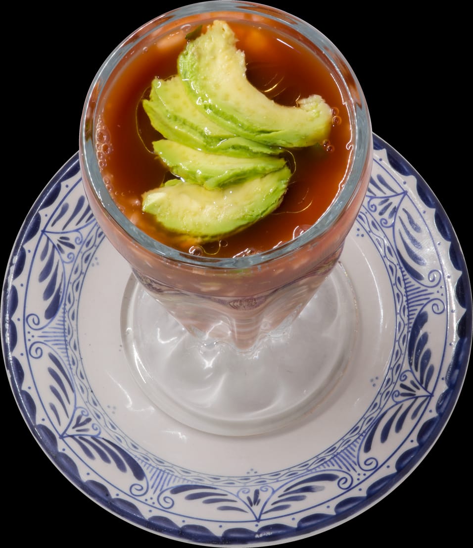 Consomé De Camarón, Cilantro, Cebolla, Aguacate, Camarón Pacotilla Y Un Toque Picante