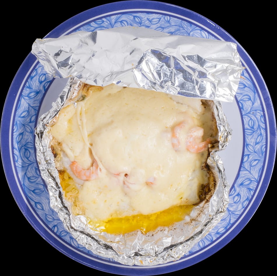 Filete De Pescado, Camarón Pacotilla, Cebolla, Hierbas Y Queso Oaxaca
