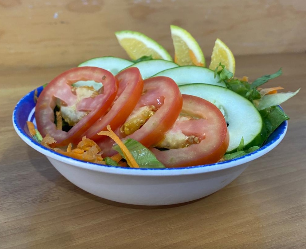 Lechuga, Jitomate, pepino, zanahoria y naranja.