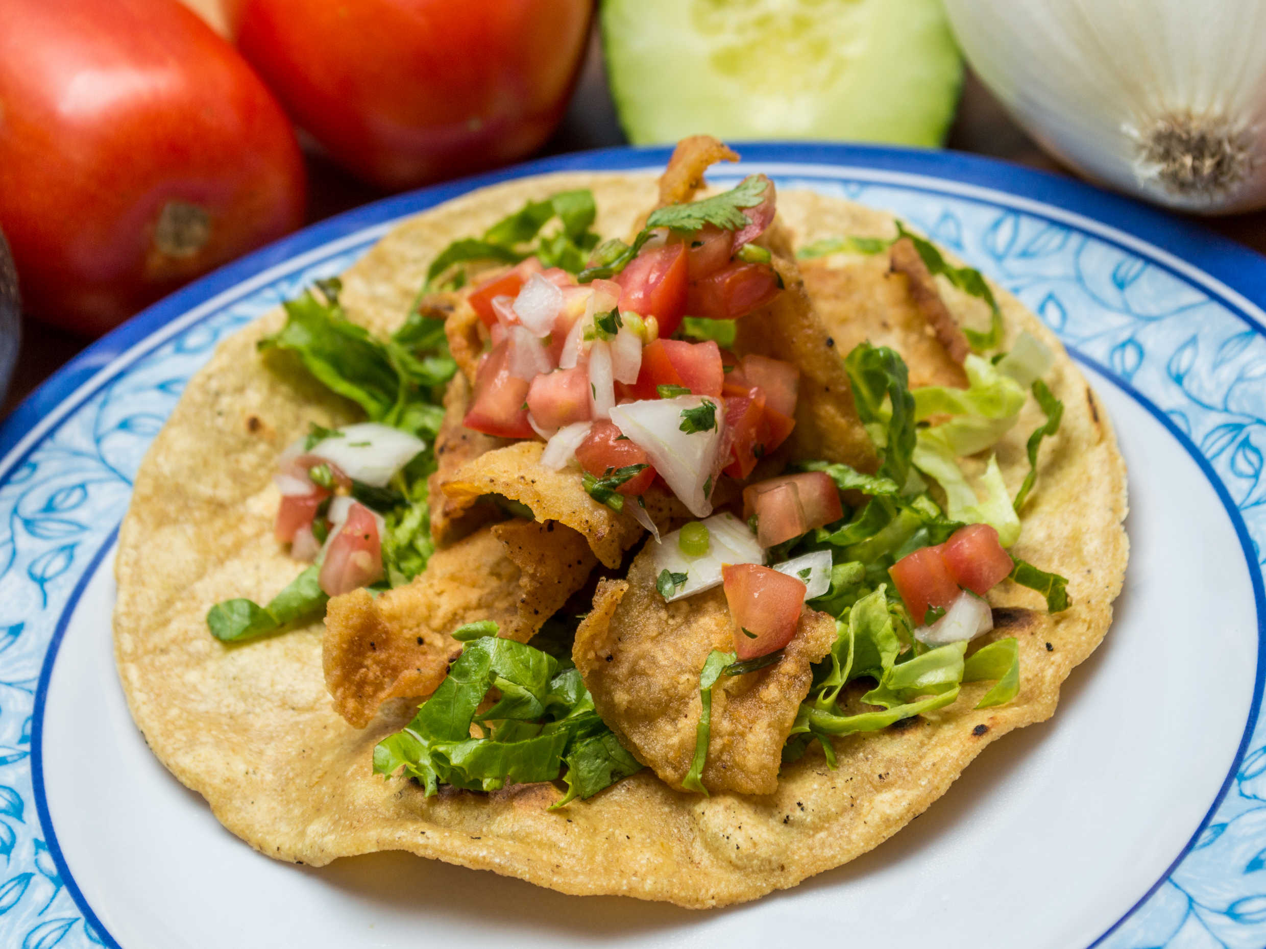 Marlin ó Camarón Con Tortilla De Harina Y Queso Oaxaca Acompañado De Pico De Gallo