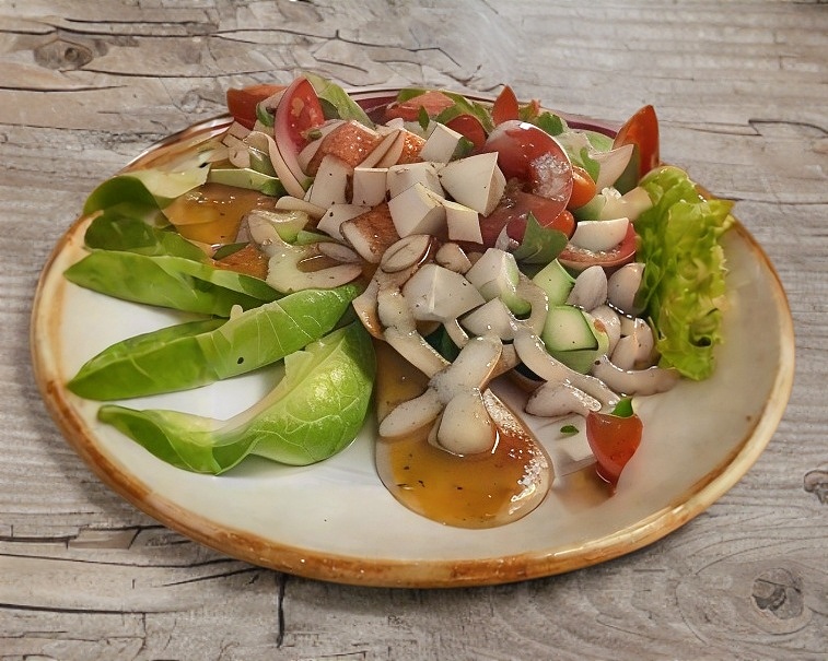 Camarón, calamar, almeja, pescado, pulpo, jaiba y surimi gratinado.