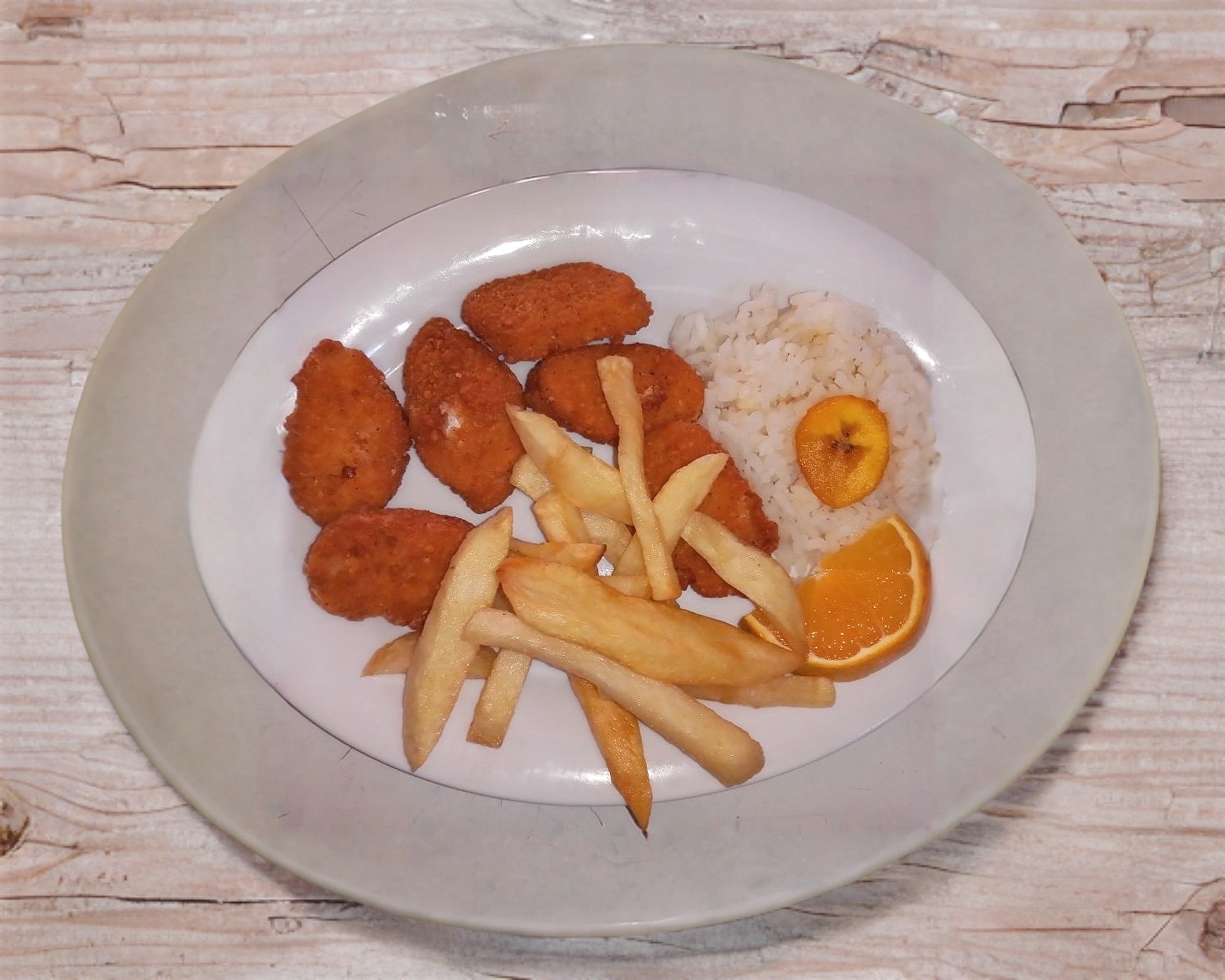 Nuggets Acompañados de arroz y papas.(9 piezas)