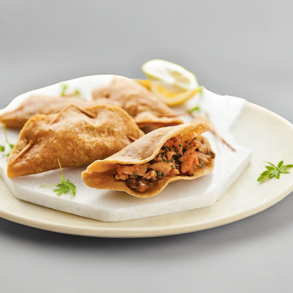 Disfruta una rica empanada combinando 2 ingredientes de tu preferencia (camarón, calamar, callo, surimi o pescado).