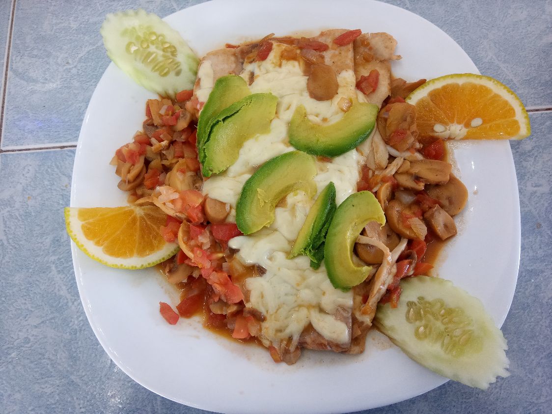 Mojarra de 900 gr preparada con chile guajillo chile cuaresmeño y cebolla fileteada acompañada de arroz y ensalada de lechuga