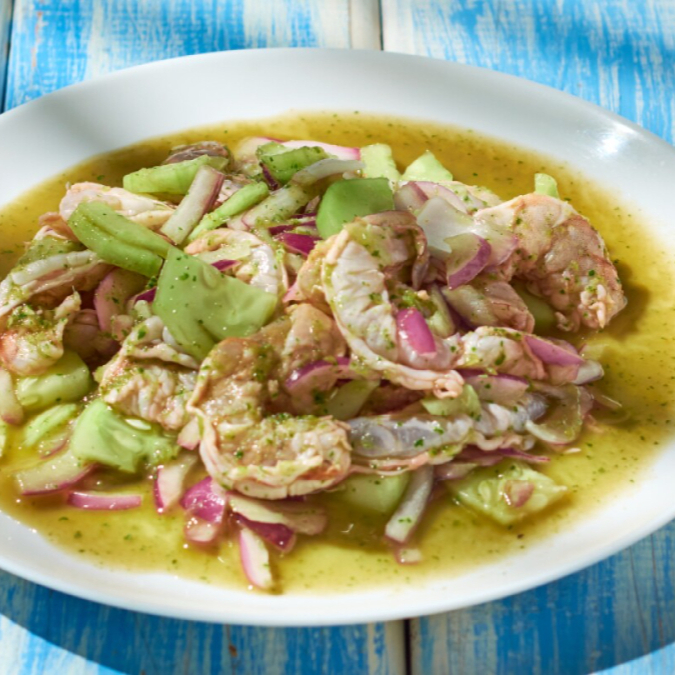 CAMARÓN, CEBOLLA, AGUACATE, MAYONESA