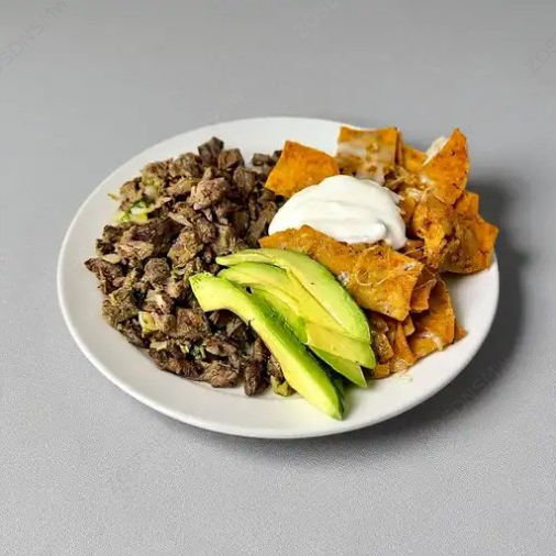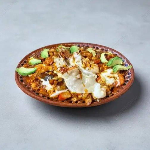Tortillas de maíz cortadas en triángulos, con cebolla en bistec, cilantro, queso y crema, escoge la preparación.