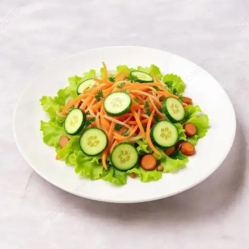 Porción de ensalada (lechuga, zanahoria, pepino y jícama).