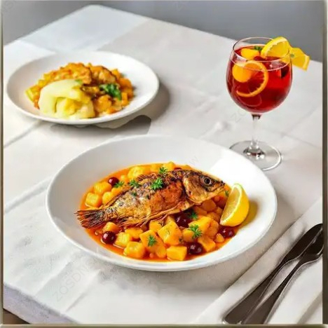 Mojarra grande acompañado de un consomé chico del día y una sangría.