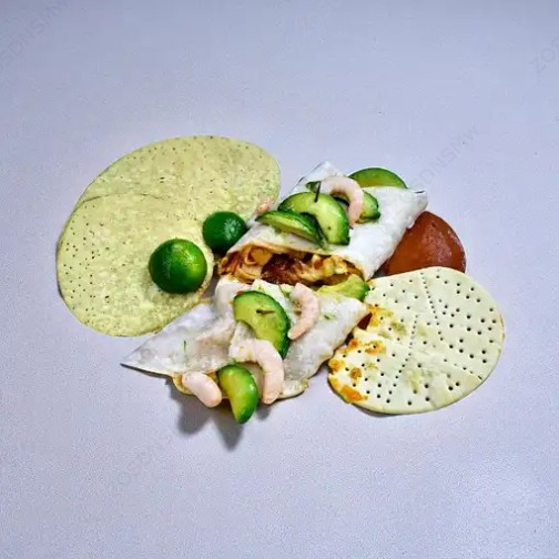 Incluye tortilla de harina de 30 cm preparados con queso, pimiento, cebolla, con guarnición de papas a la francesa y ensalada de la casa.