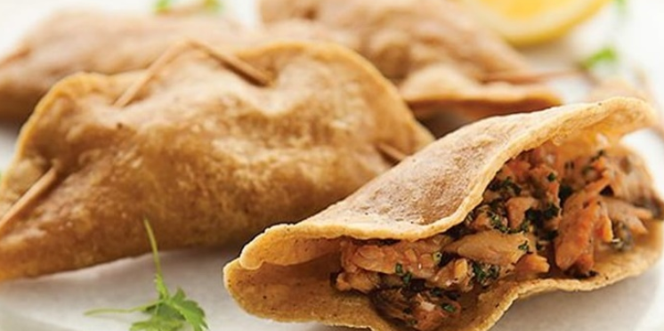 Crujientes quesadillas rellenas de un sabroso preparado de pescado, doradas a la perfección. Por arriba un ligera capa de mayonesa, cilantro, cebolla y aguacate. (Aparte) Salsa valentina y limon.