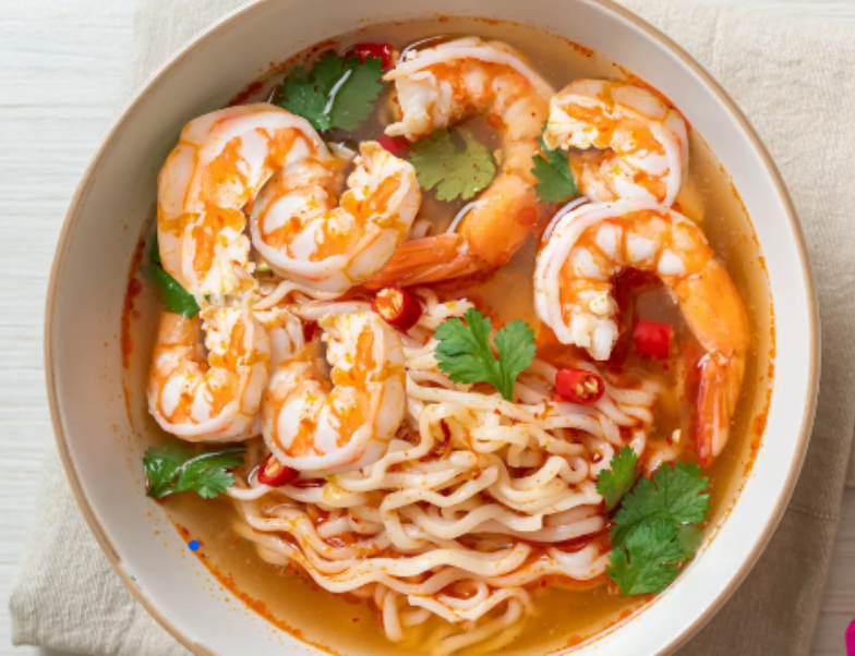 Sopa instantánea con camarones frescos que añaden un toque marino a esta comida rápida y reconfortante, con cilantro, cebolla y aguacate por arriba. Ideal para una opción sencilla y deliciosa. Lleva dos galletas saladitas, limon y salsa valentina. (Aparte)
