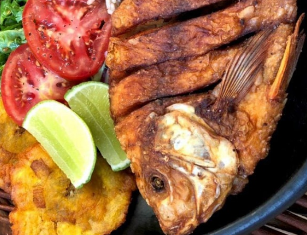Mojarra perfectamente frita al mojo de ajo, acompañada de una fresca ensalada y arroz esponjoso. El platillo ideal para los amantes de sabores intensos y frescos. (Aparte) Salsa valentina y limon.