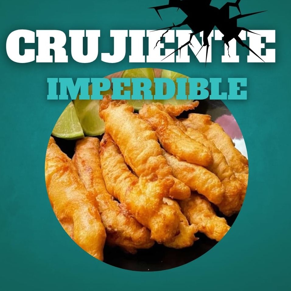 Deliciosa tira de pescado frito cubierta con un capeado dorado y crujiente. Perfectas para disfrutar el sabor del mar en cada bocado. (Aparte) Salsa valentina, catsup y limon.