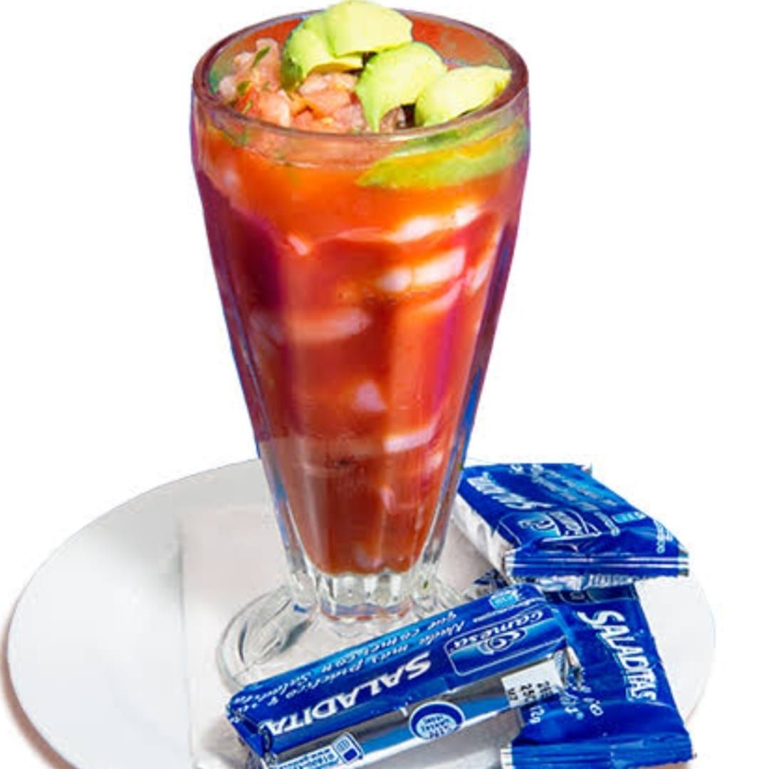 Camarones frescos y jugosos servidos en un cóctel refrescante con cilantro, jitomate, cebolla y aguacate. Todo bañado en nuestra irresistible mezcla especial de cátsup que realza cada sabor marino. Un clásico que nunca falla. (355 ML) Lleva dos galletas saladitas, limon y salsa valentina. (Aparte)