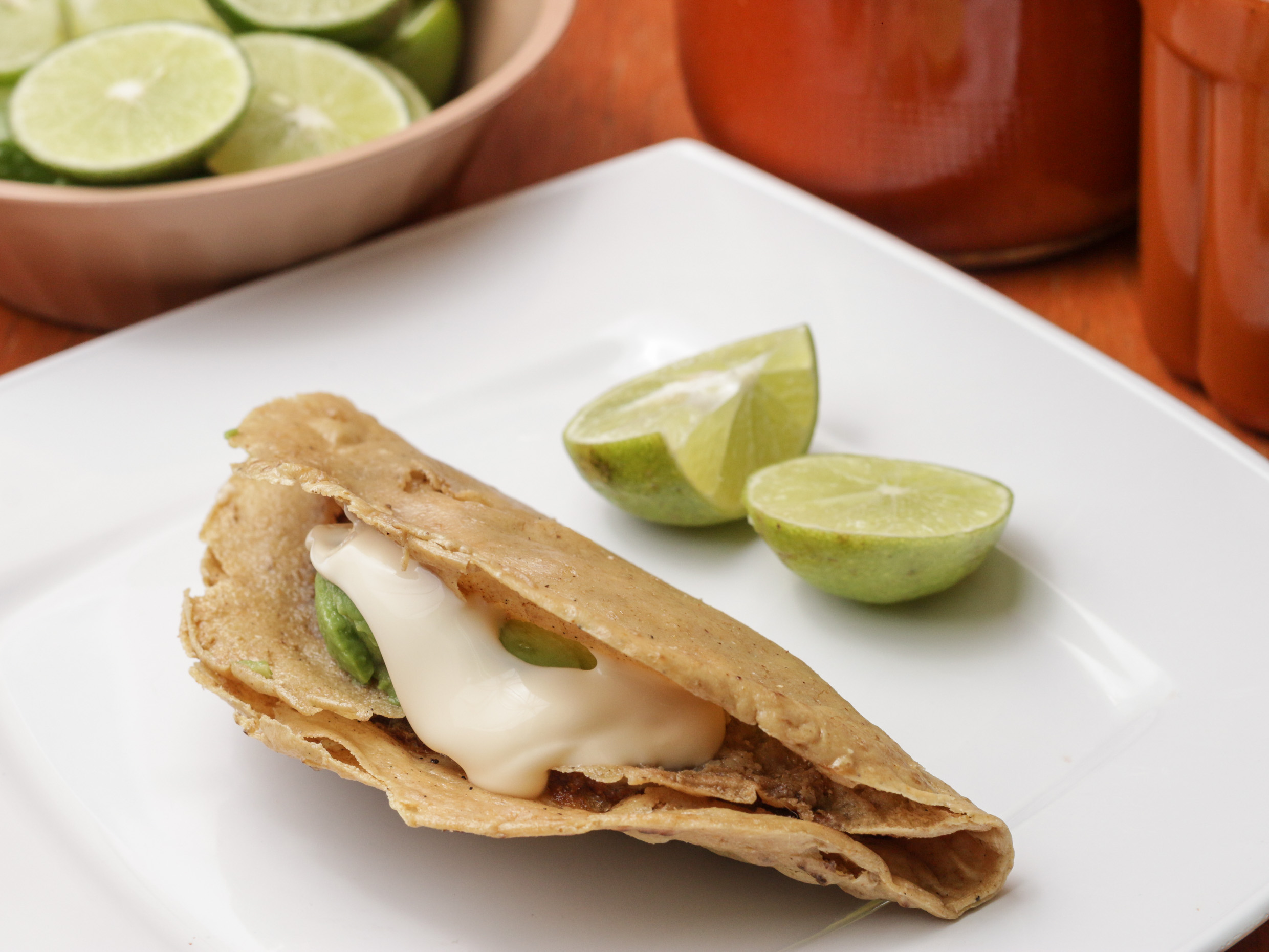 Cuatro quesadillas preparadas con mayonesa y un toque de aguacate