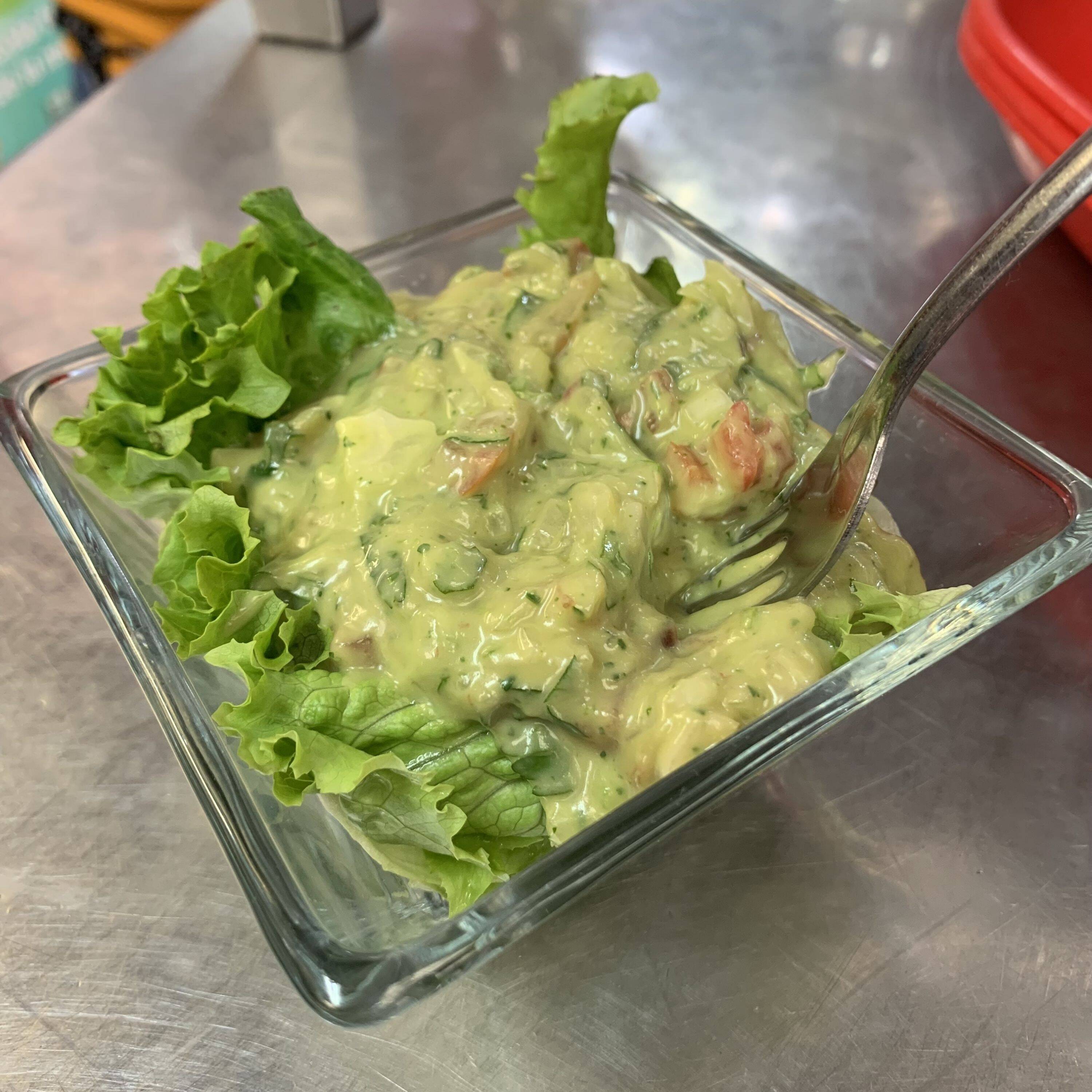 Preparada con papa, zanahoria, lechuga, chicharo, aguacate, crema y mayonesa.