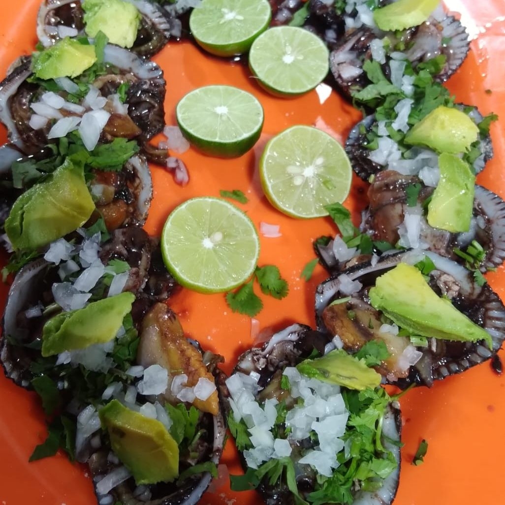 5 pata de mula servida en su concha preparada con cilantro, cebolla y aguacate