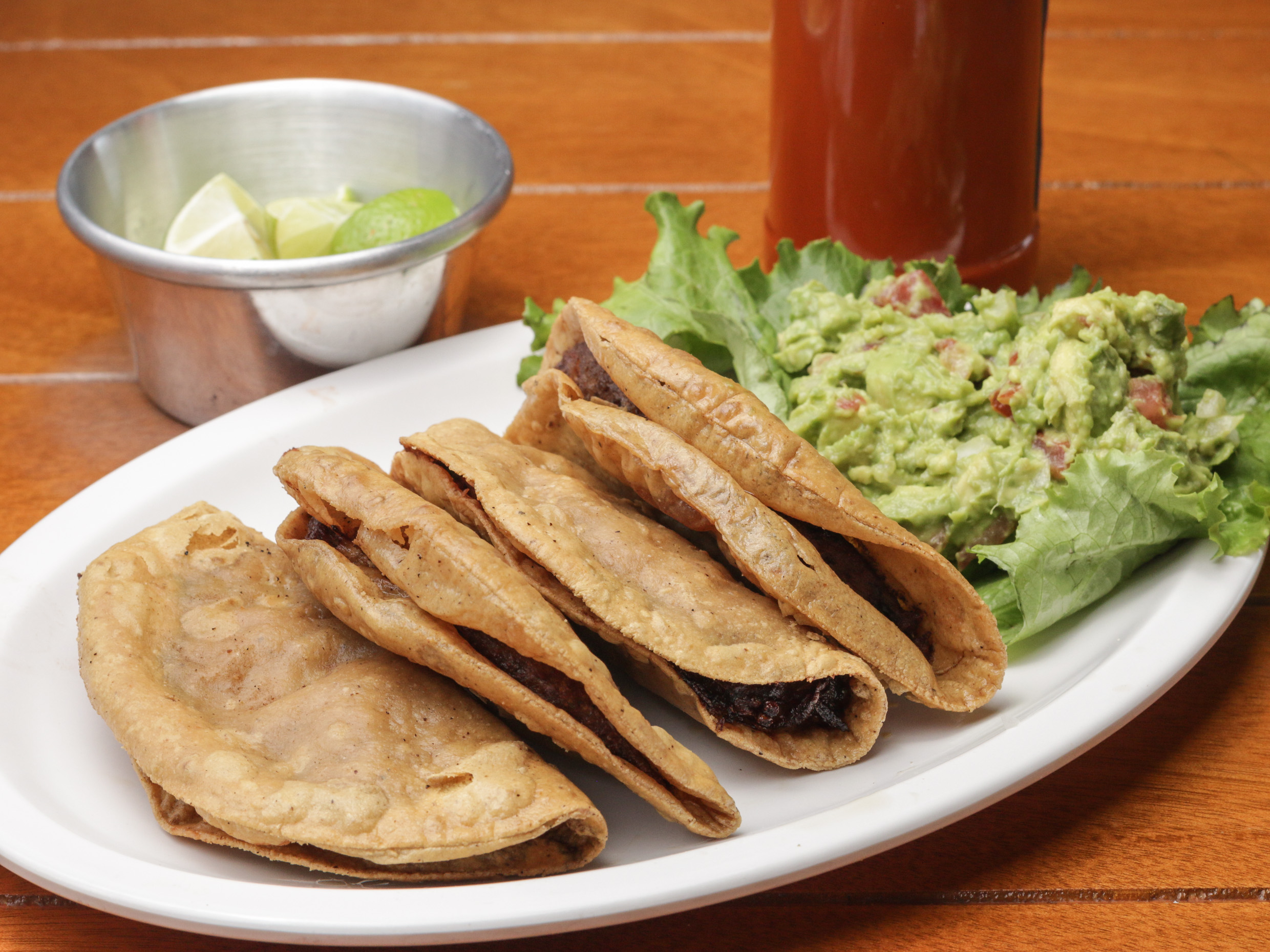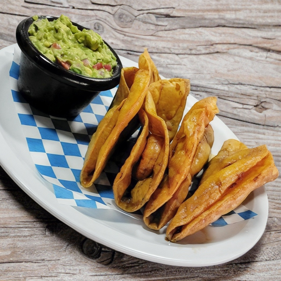 4 quesadillas de jaiba fritas acompañadas de guacamole aparte.