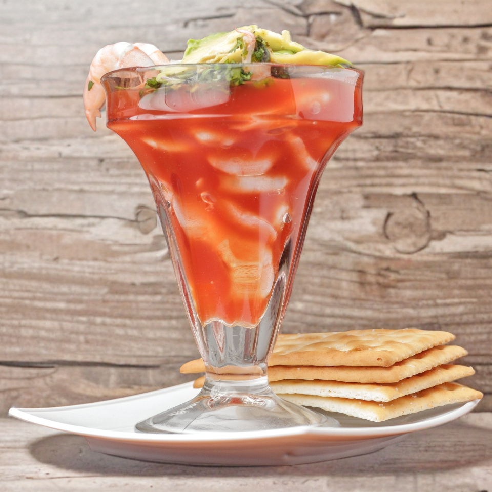 Coctel Personal // 1 Copa Con salsa catsup preparada, 100 gr camarón cilantro cebolla y aguacate.