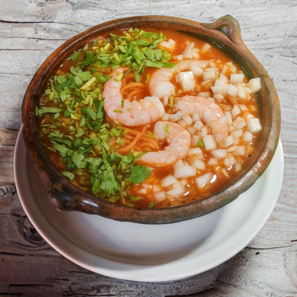 Sopa Maruchan con Caldo de Camarón y Camarones