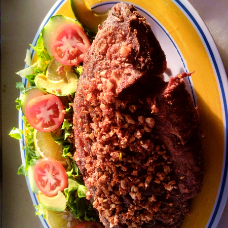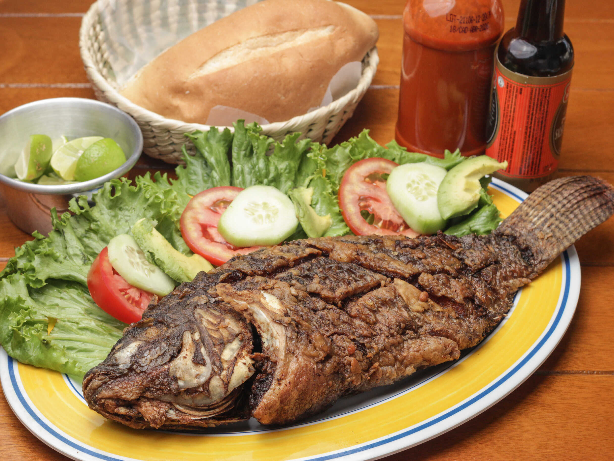 Mojarra de 1 kg aproximadamente pesada en crudo, acompañada con ensalada.