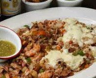 Camaron, pulpo, ostion, surimi, calamar sazonado con chipotle, gratinado con quesl oaxaca.