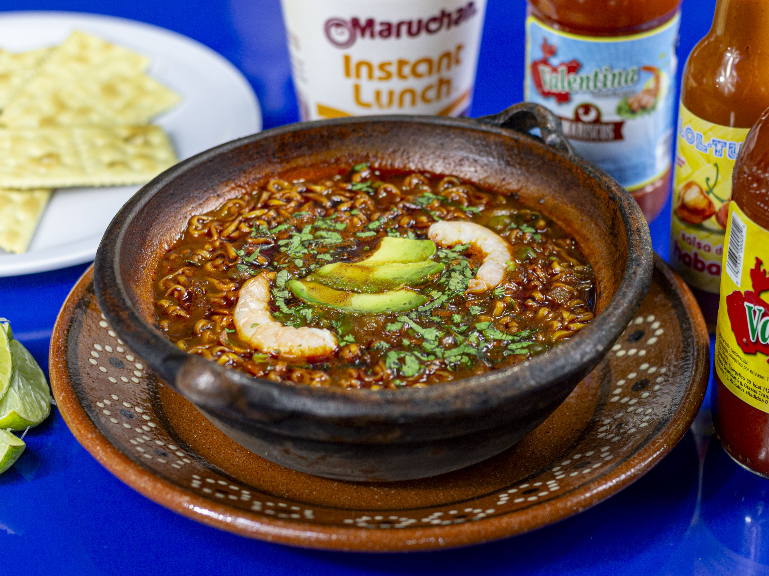 Sopara maruchan cocida con caldo de camarón, NO INCLUYE CAMARONES